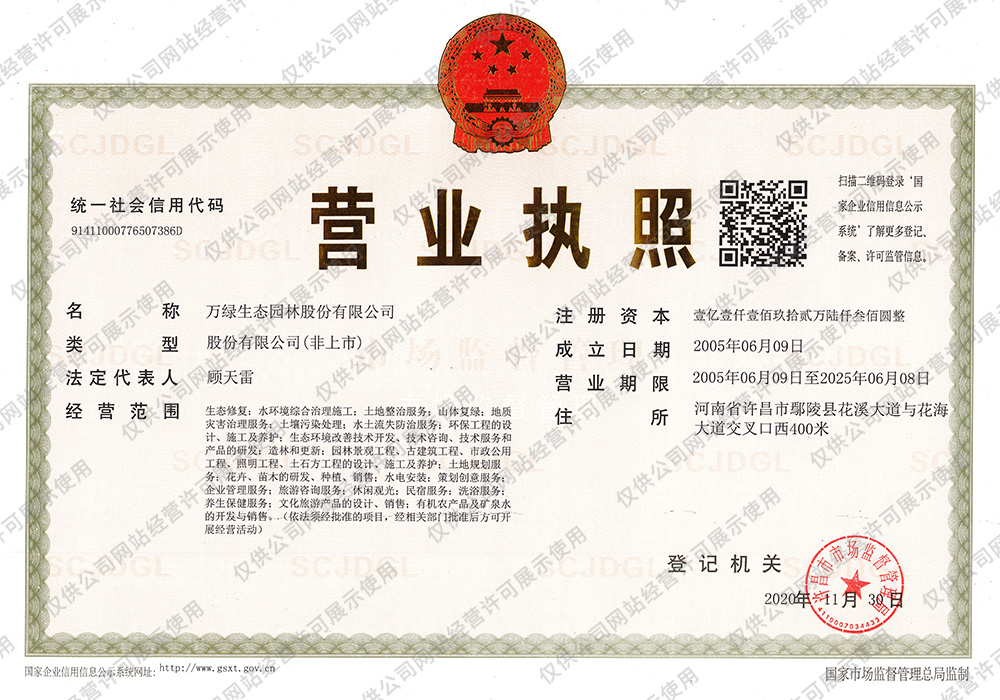 版權(quán)所有?萬(wàn)綠生態(tài)園林股份有限公司   豫ICP備15011871號(hào)     營(yíng)業(yè)執(zhí)照